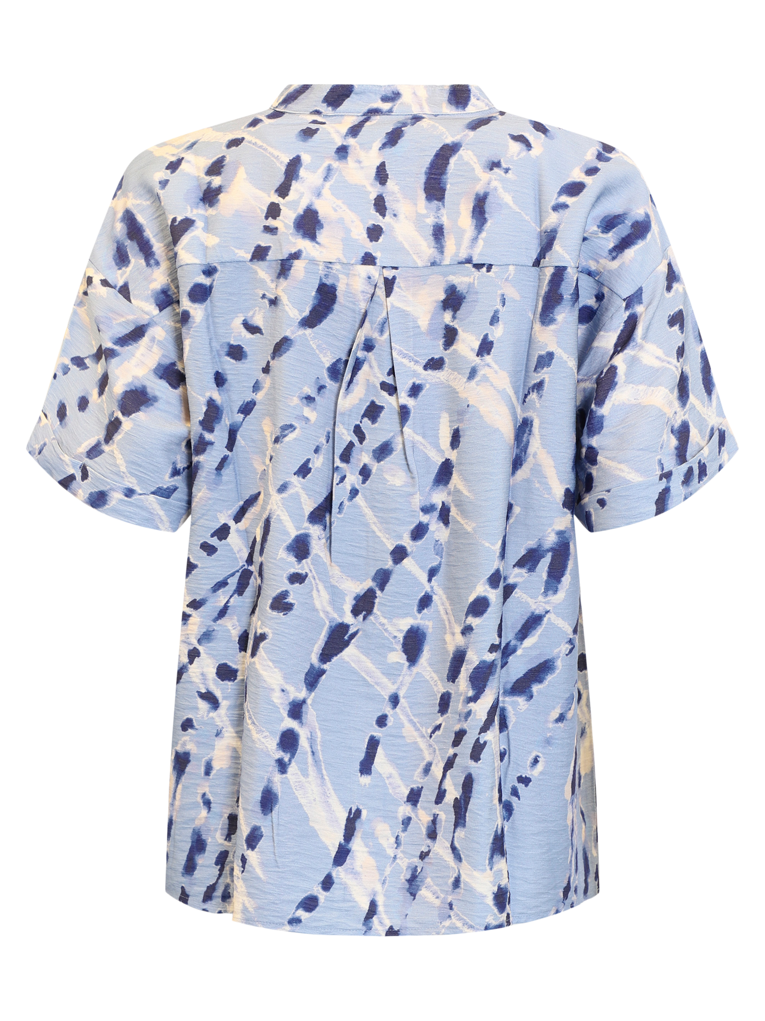 Deze blouse met een all-overprint heeft korte mouwen met een omgeslagen rand voor een mooie afwerking. Middenvoor zit een knoopsluiting. De blouse is leuk te combineren met de bijpassende rok.