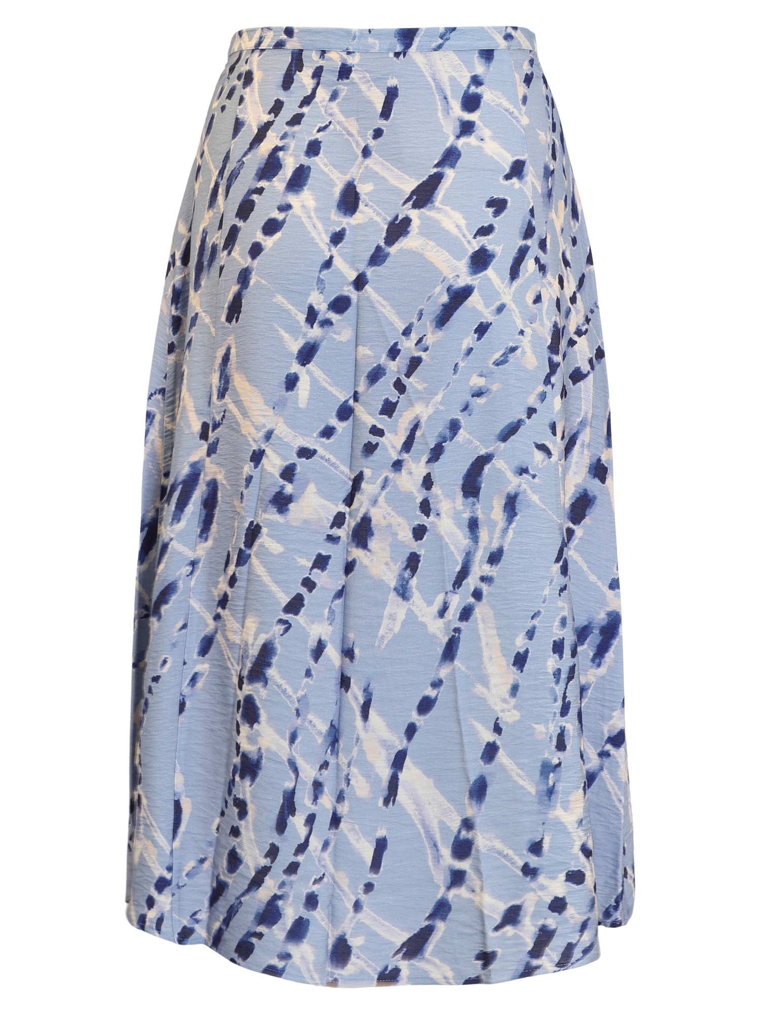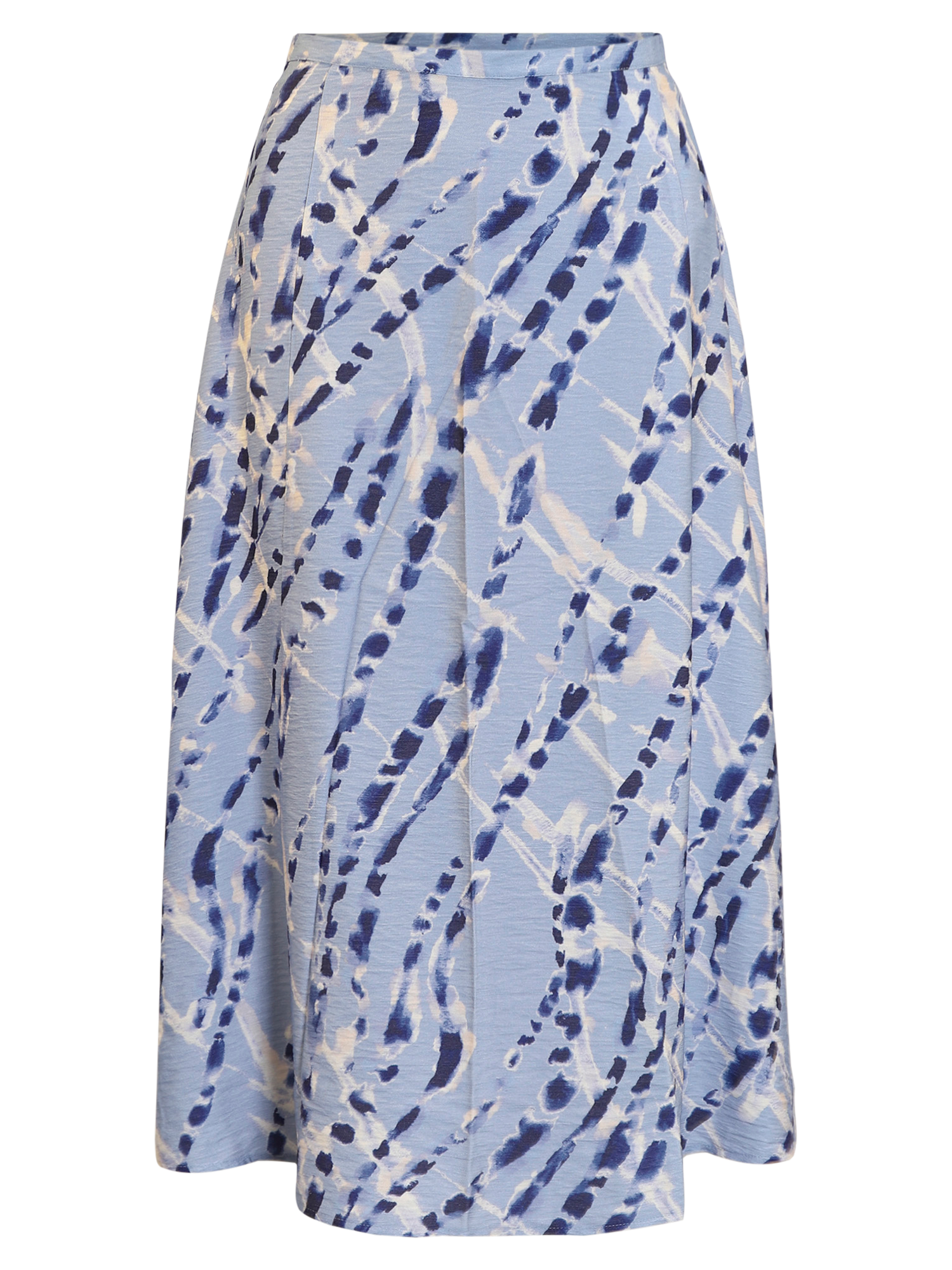 Deze rok met een mooie all-overprint heeft een blinde ritssluiting in de zijnaad en loopt wijd uit. De rok is erg leuk te combineren met de bijpassende blouse.