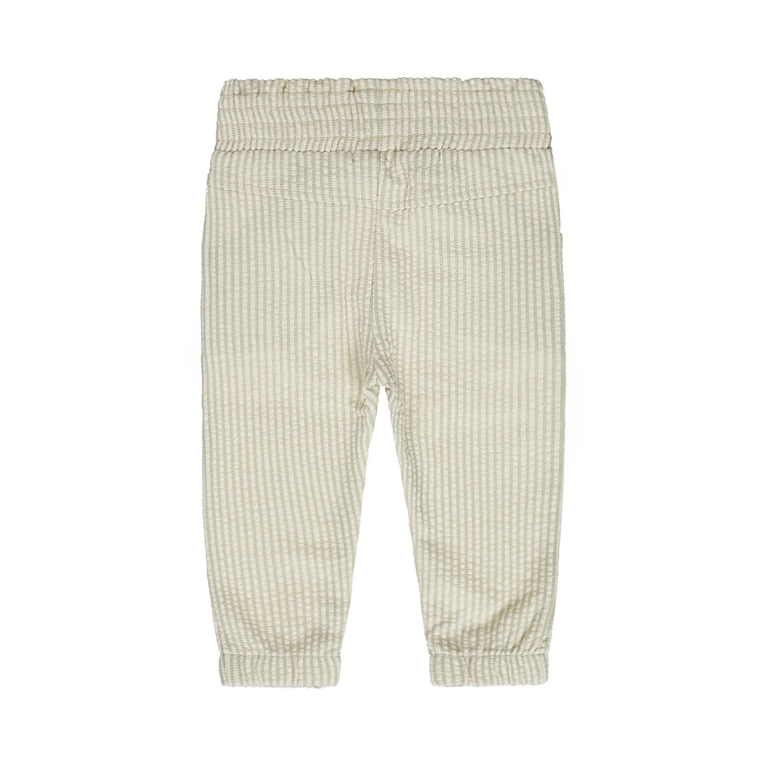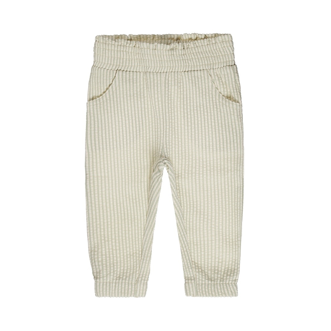 Dirkje Broekje. Dit broekje met elastische boord heeft een ingeweven rib. Het broekje heeft op het voorpand steekzakken. Onder aan de pijp heeft het broekje een elastiek. Gemaakt van 56% katoen, 30% polyester, 13% viscose en 1% elastomeer.