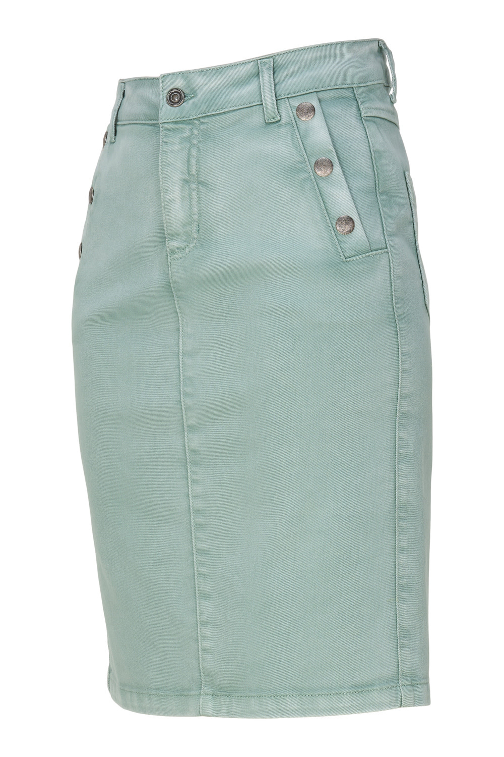Op het voorpand zitten steekzakjes, deze zijn afgewerkt met leuke zilveren knoopjes. De rok heeft lussen voor een ceintuur. De rok is beschikbaar in de kleur: Jade en Pink