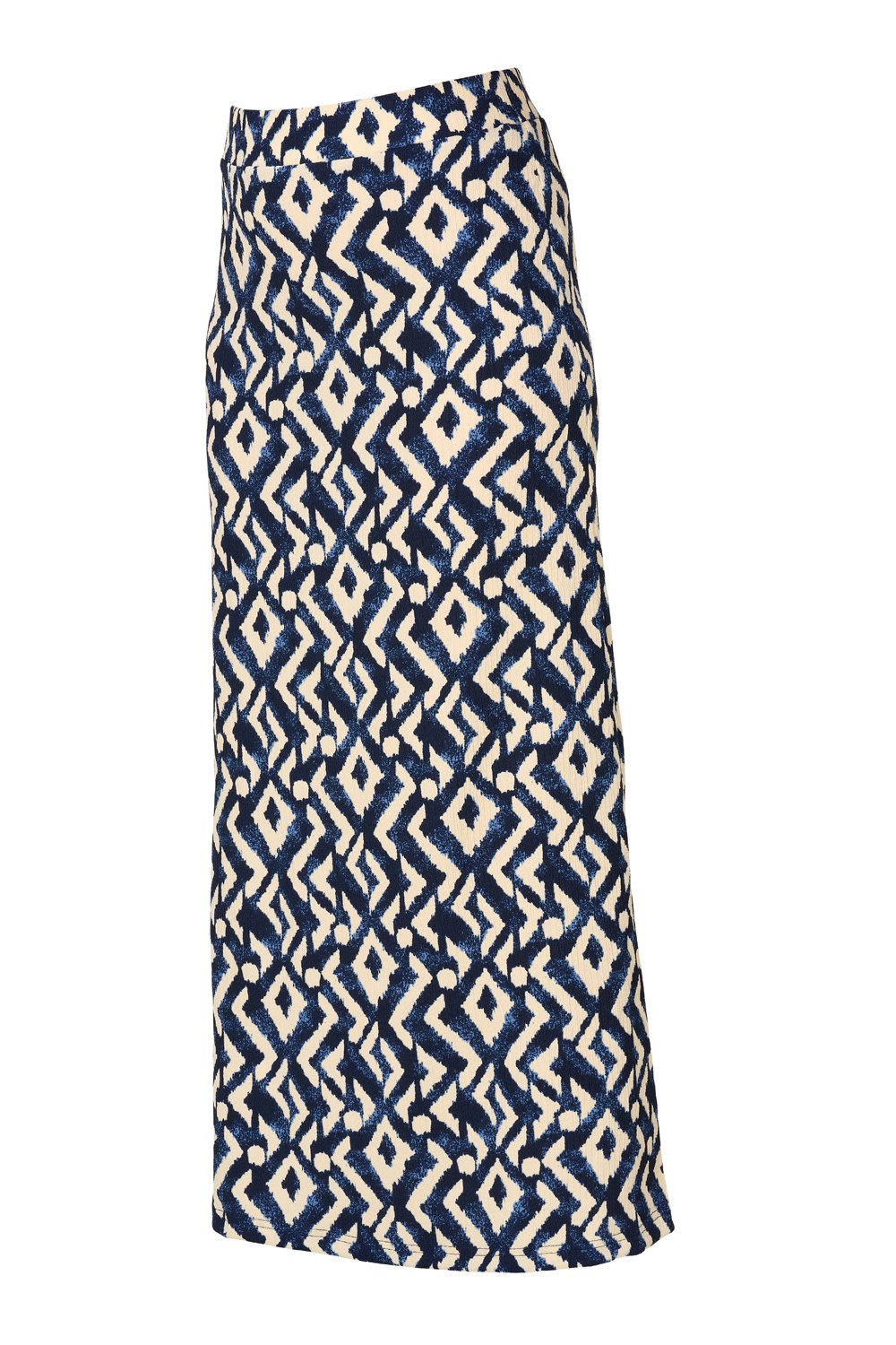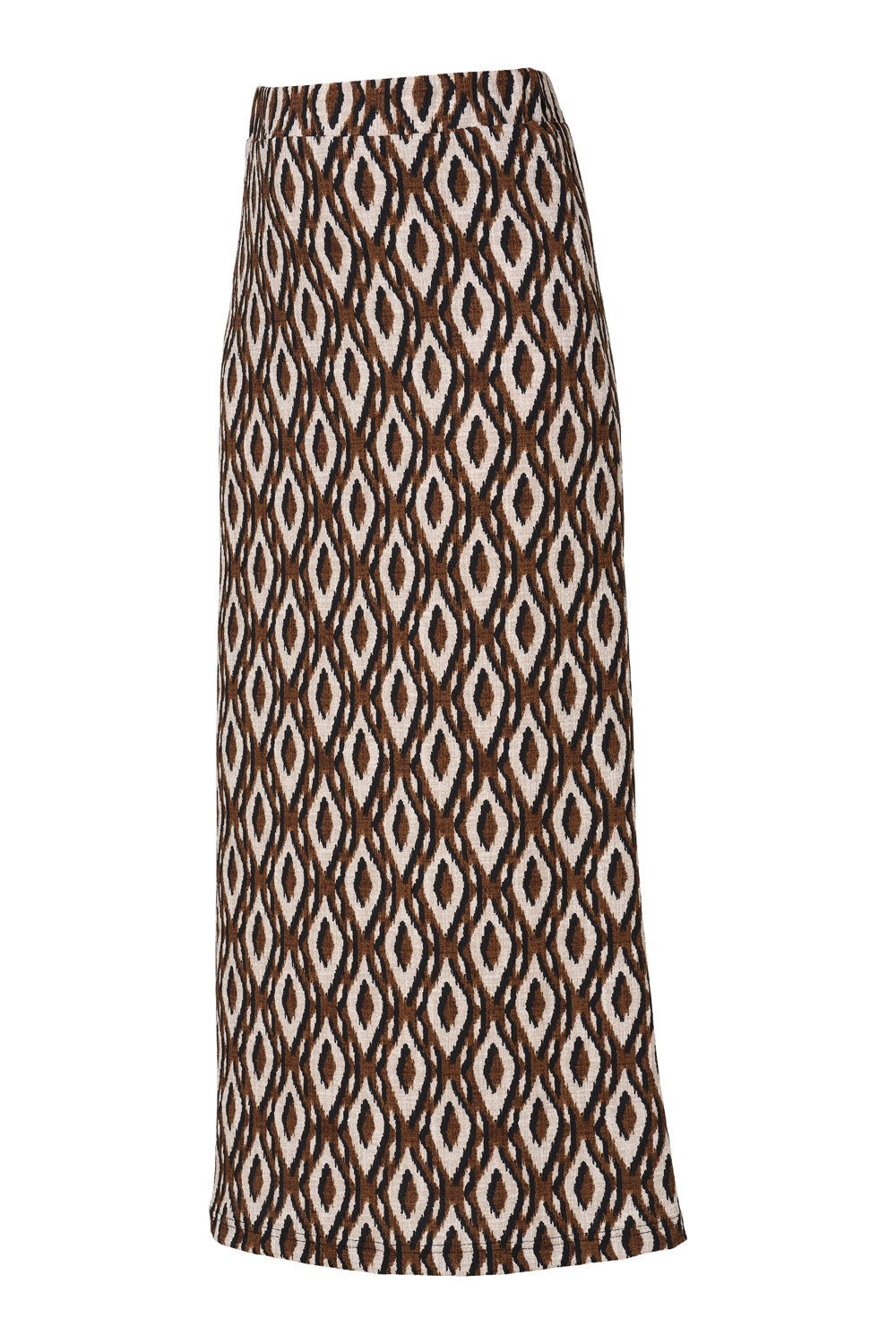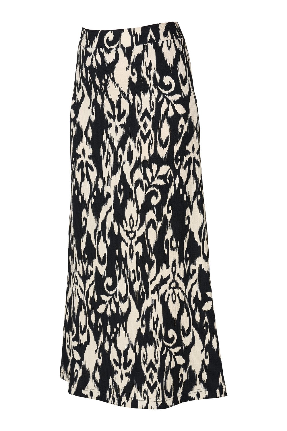 Dreamstar Rok Z26 209 Noka. Deze lange rok met print, heeft een ingeweven structuurtje. De rok heeft een A-lijn en elastiek in de boord. Gemaakt van 98% polyester en 2% elastomeer.