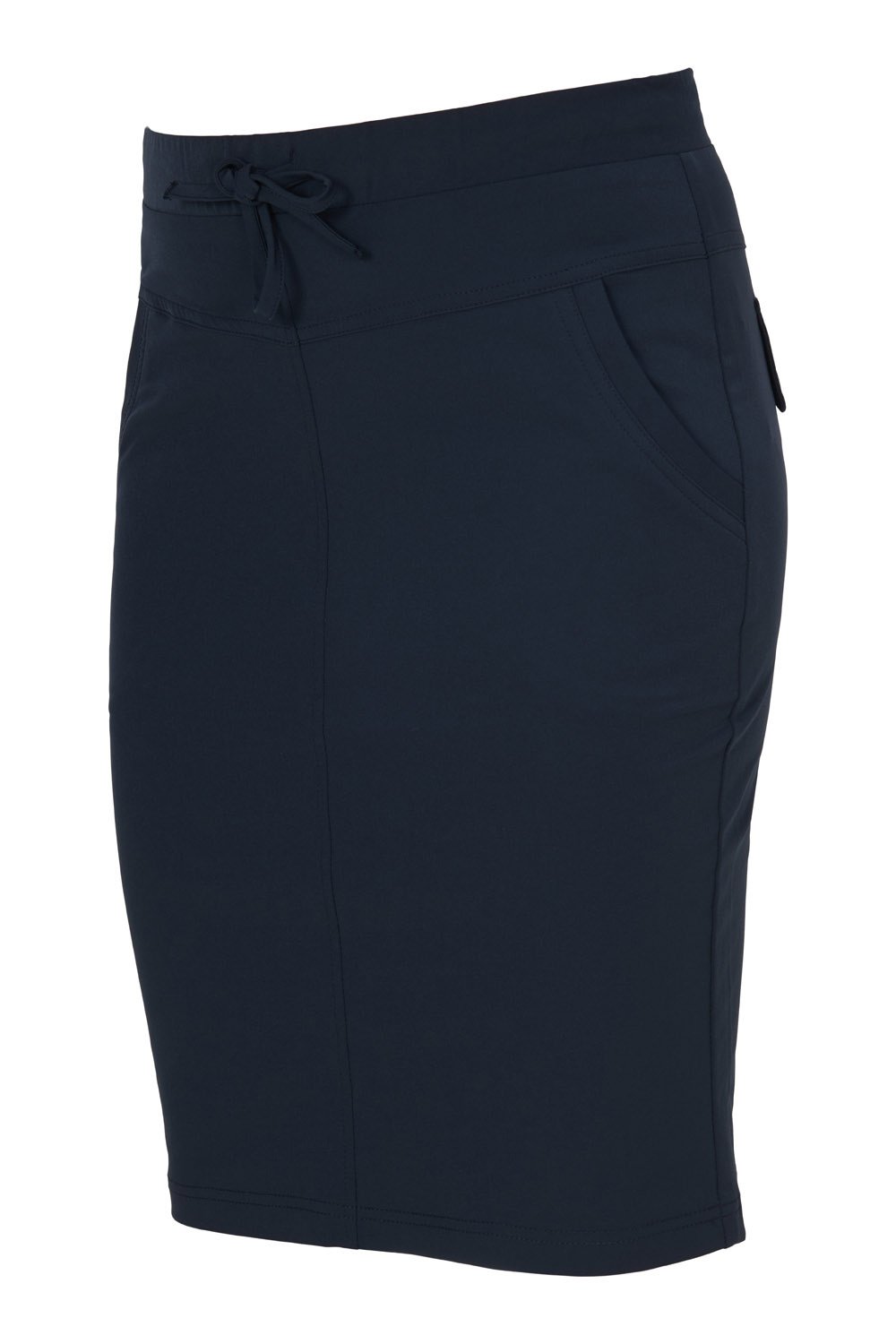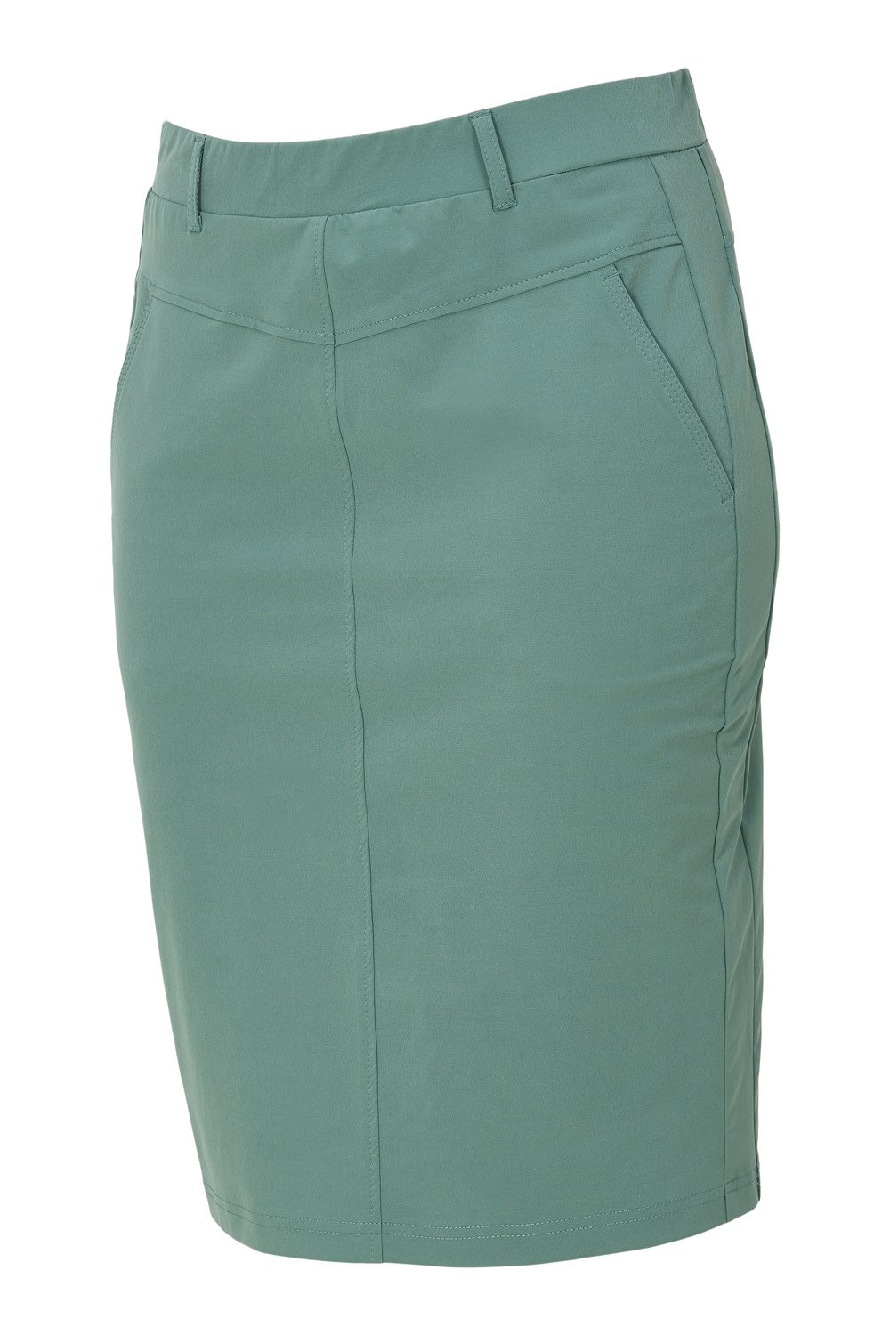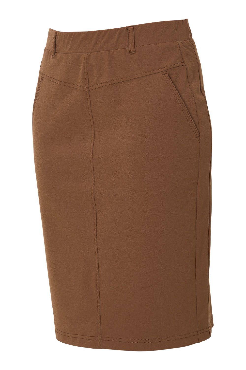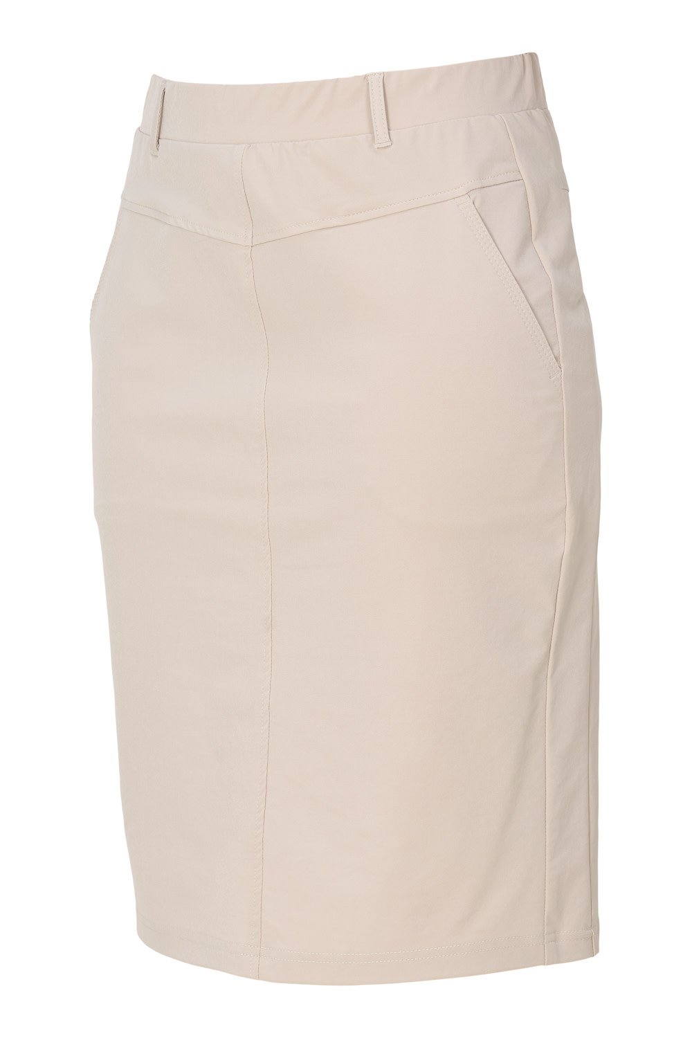 Deze fijne rok van travelstof heeft een elastische boord, op het voorpand heeft de rok steekzakjes. De rok heeft lussen voor een ceintuur. Materiaal: 87% Polyester en 13% Elastaan.