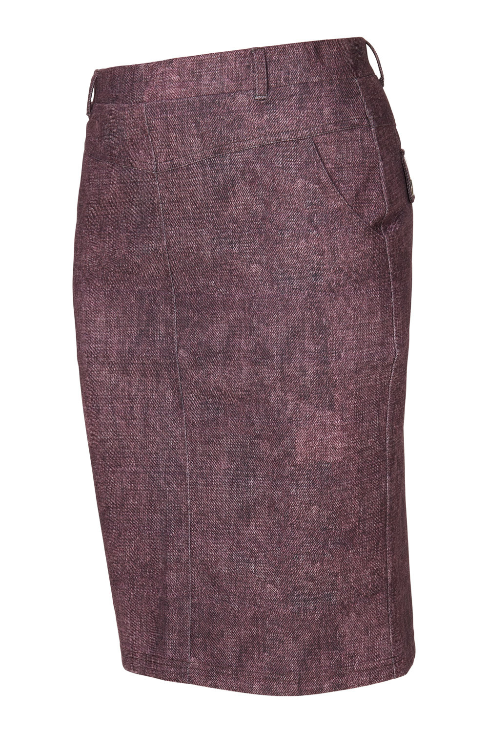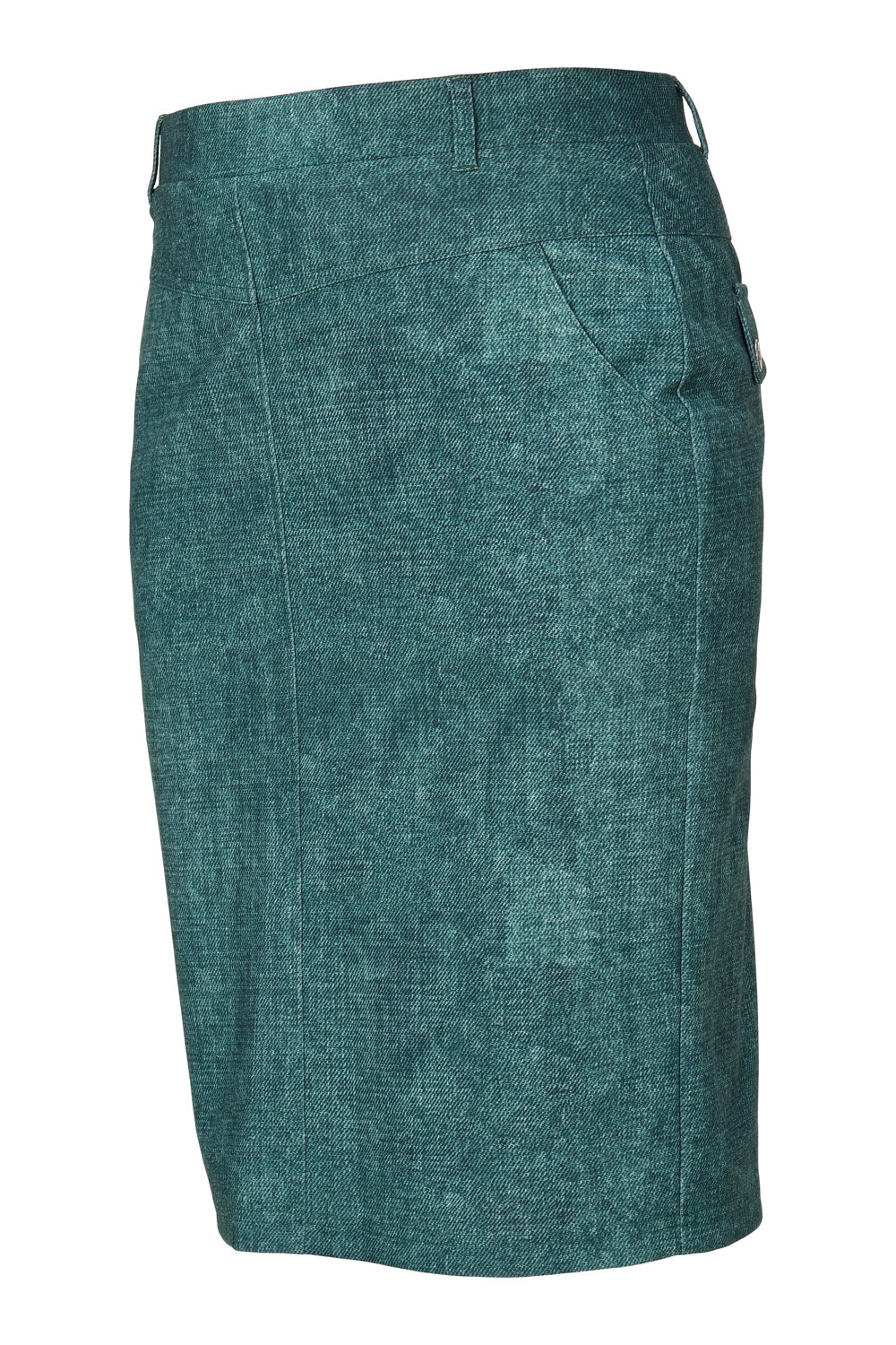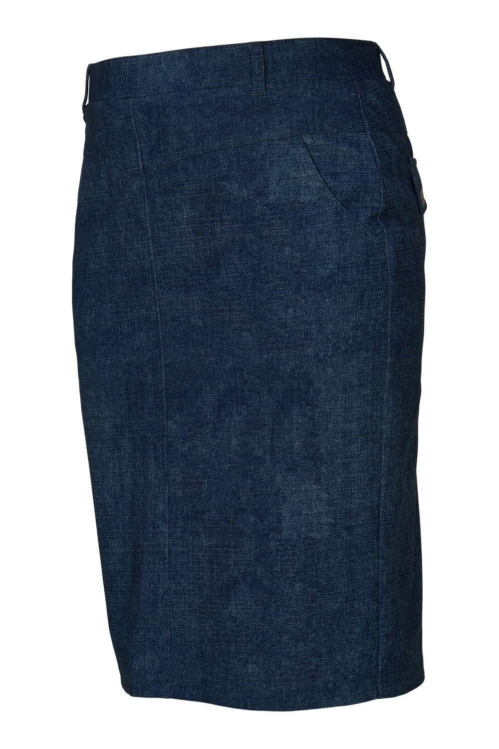 Deze rok is van een mooie tricot stof, in de stof zit een printje. De rok is verkrijgbaar in de kleuren: Burgundy, Forest en Indigo. De rok heeft een elastische boord, op het voorpand zitten twee steekzakken. In het achterpand zitten twee sierzakken met een klepje en een knoopsluiting.
