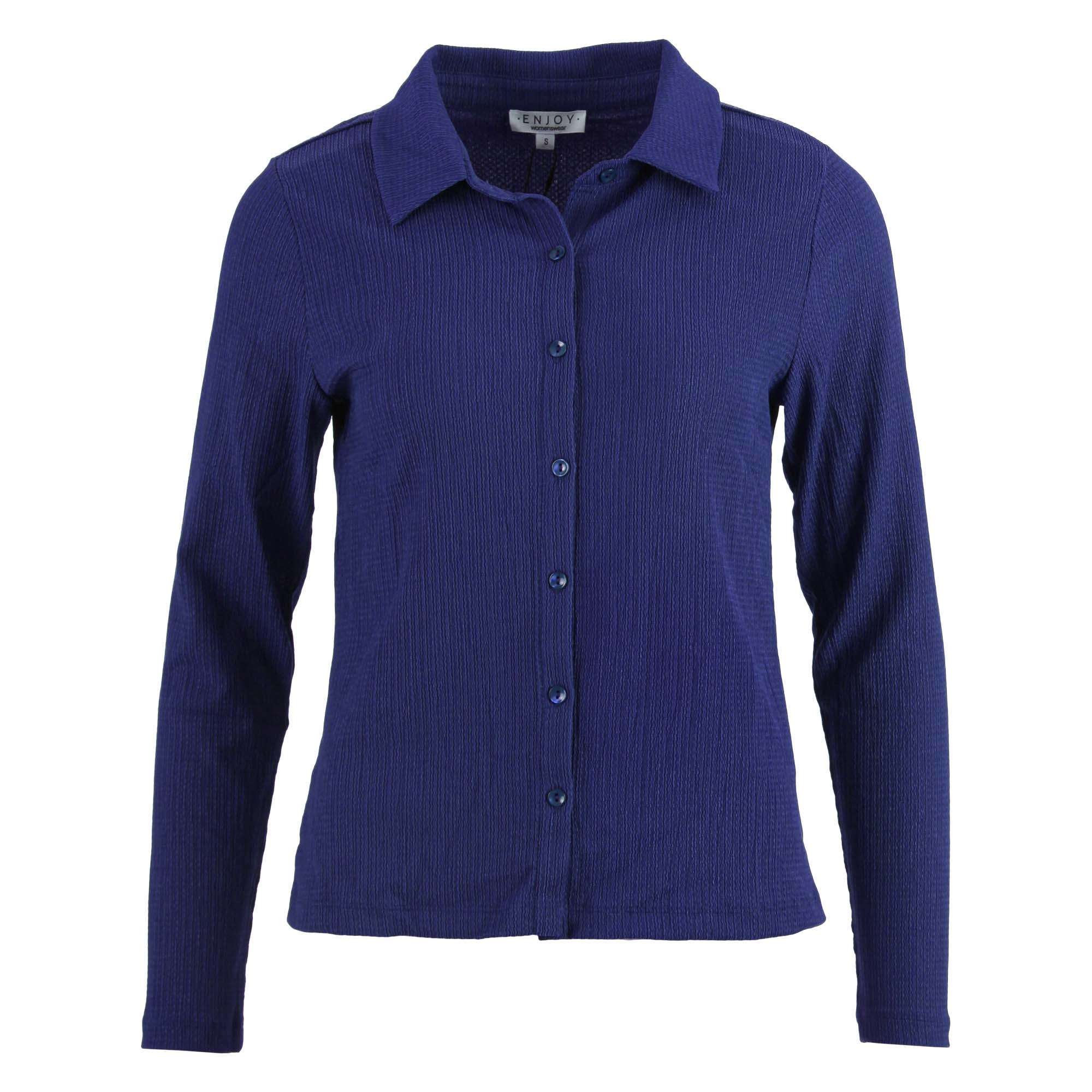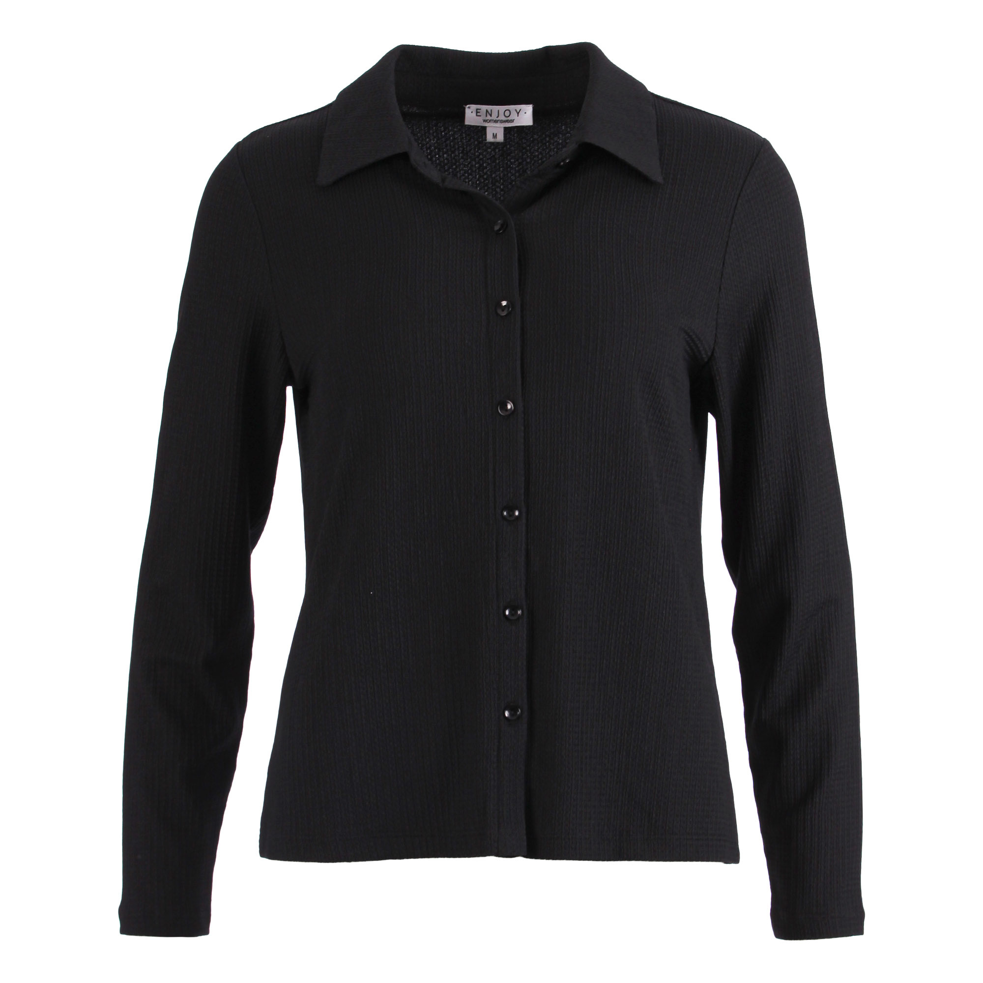Enjoy Blouse LM. Deze blouse met lange mouw en kraagje heeft een knoopsluiting midden voor. De blouse is gemaakt van 98% polyester en 2% elastomeer.