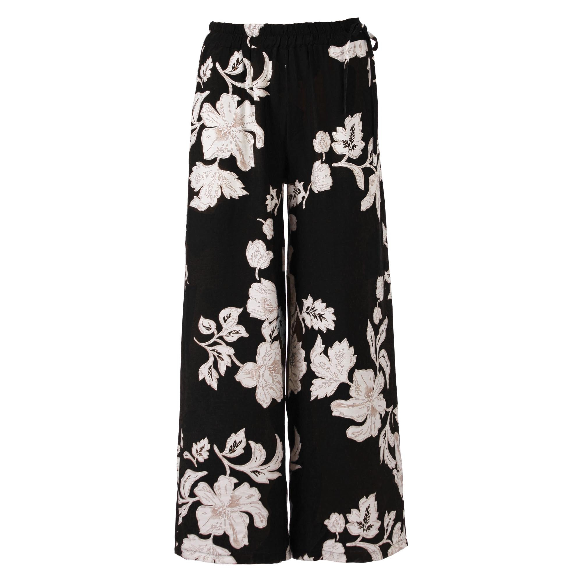 Deze broek met een leuke bloemenprint heeft een elastische boord. Het is een Wide Leg model dus de broekspijpen lopen wijd uit. De broek is leuk te combineren met de bijpassende blouse.