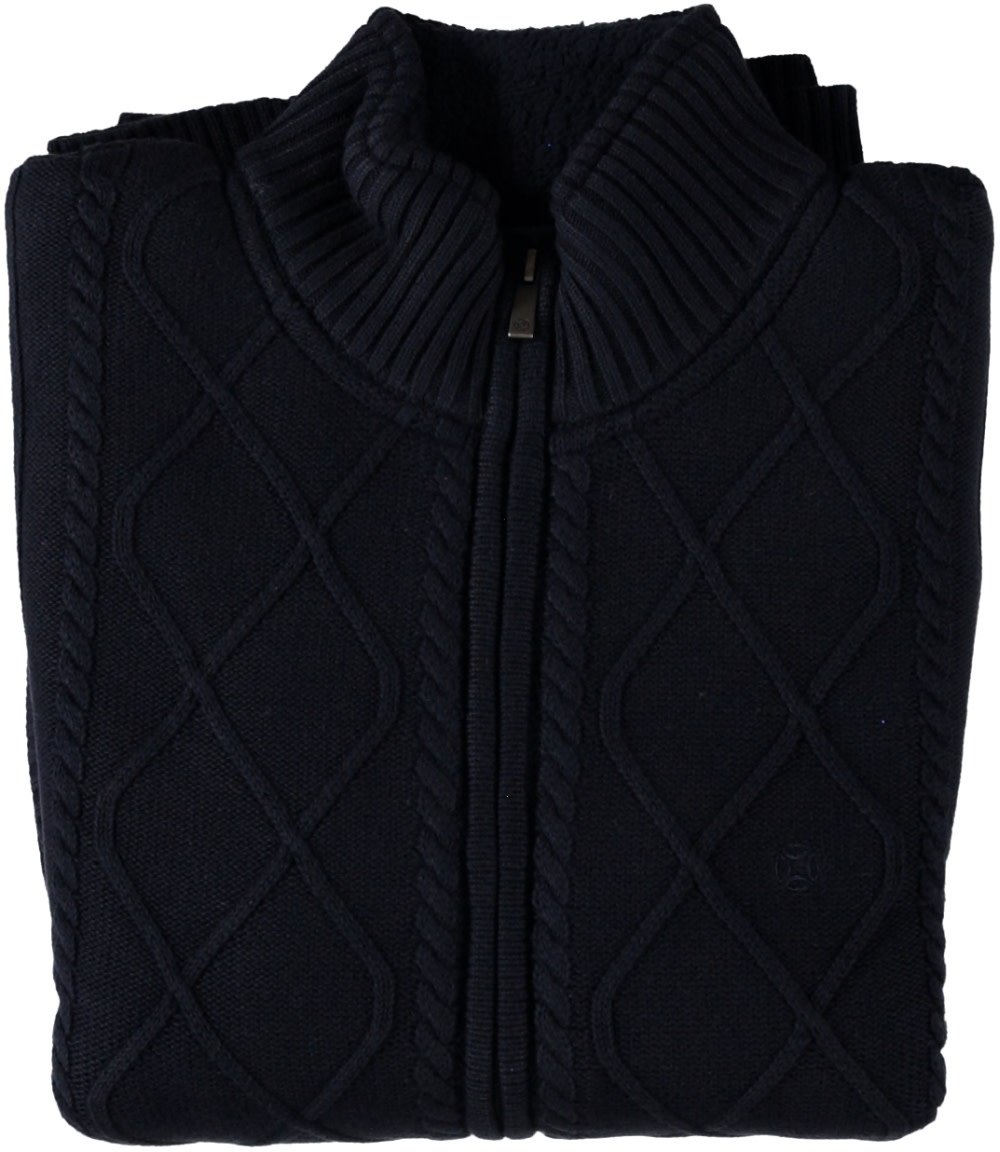 Dit mooie vest met een kabelstructuur in de stof heeft een gevoerde binnenkant van een zachte stof. Het vest heeft een ritssluiting middenvoor. Op het voorpand heeft heeft vest steekzakjes.