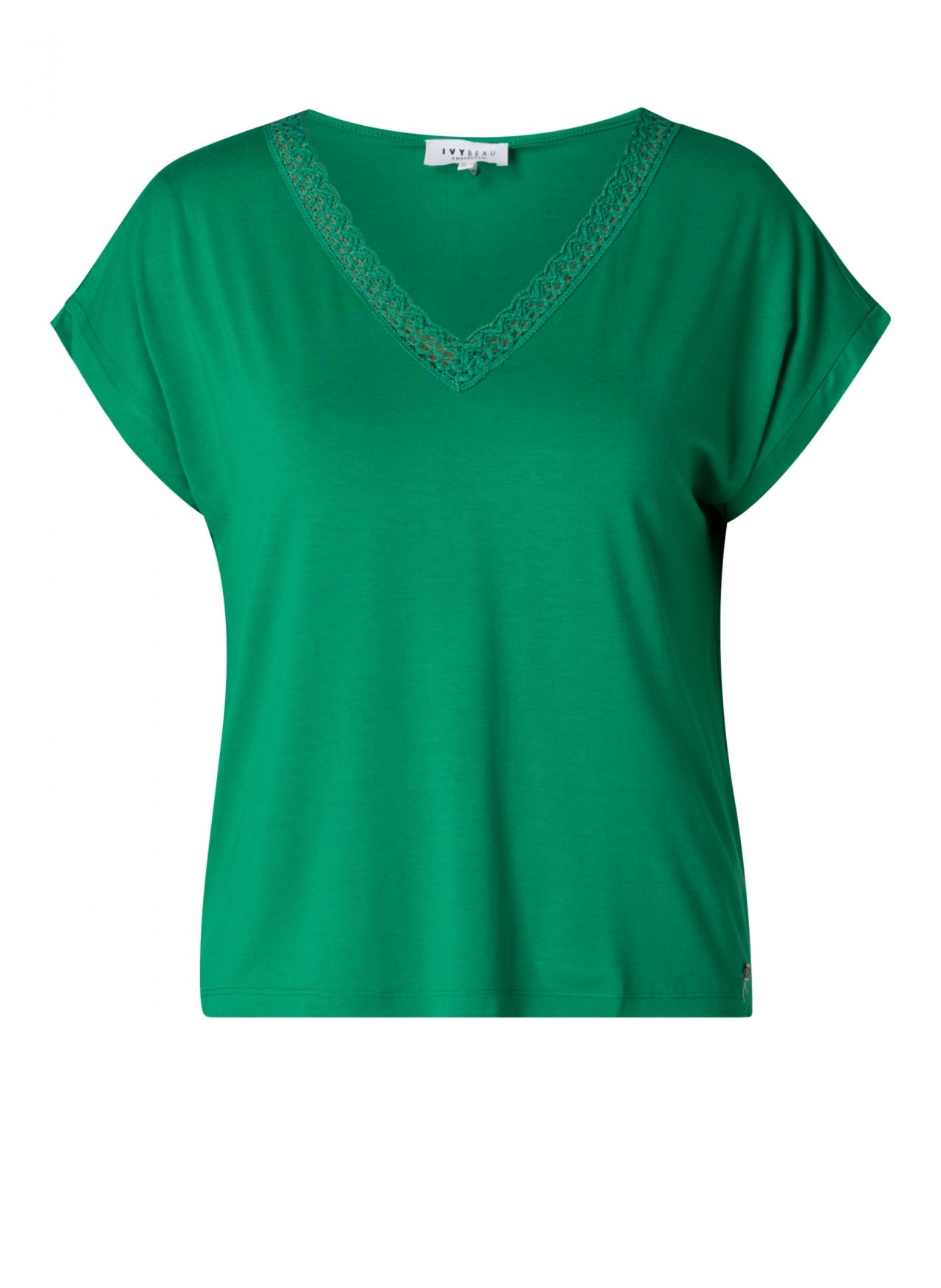 Dit shirt van Ivy Beau heeft een kort mouwtje en een V-hals, deze is afgewerkt met een leuk randje.