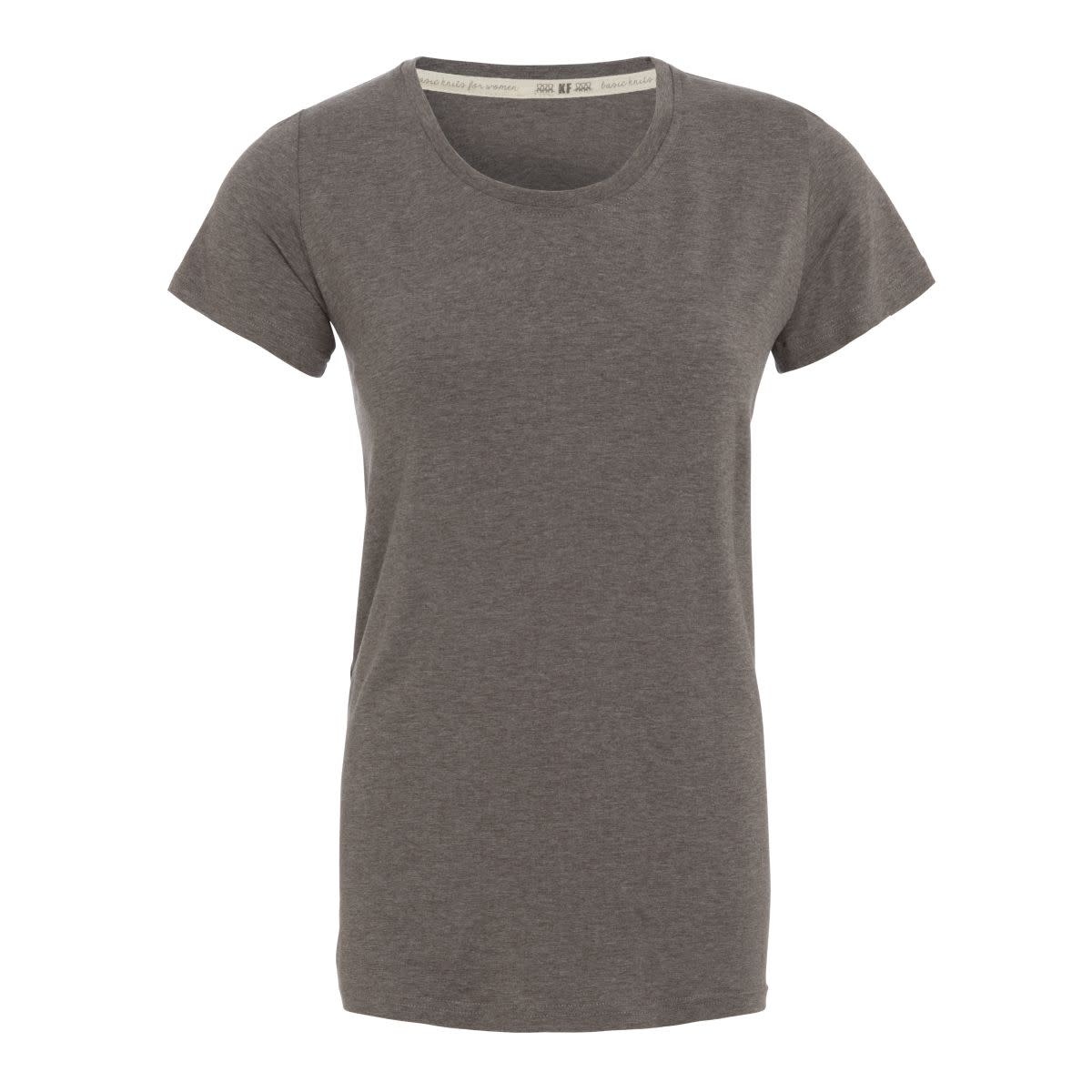 Knit Factory Shirt Lily. Dit basic shirt heeft ronde hals en korte mouw. Verkrijgbaar in het zwart en taupe. Gemaakt van 96% viscose en 4% elastomeer.