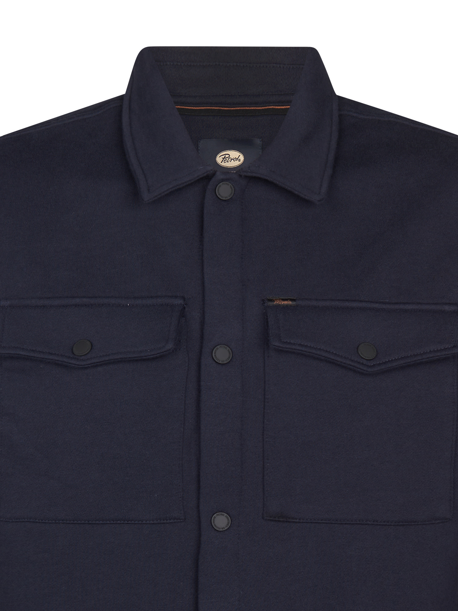 Dit Overshirt heeft een mooie dikke stof, middenvoor zit een drukknoopsluiting. Het Overshirt heeft een opstaande kraag. Op het voorpand zitten steekzakjes en klep zakken. Het jasje is er in de kleuren Royal Navy en Mossy Stone.