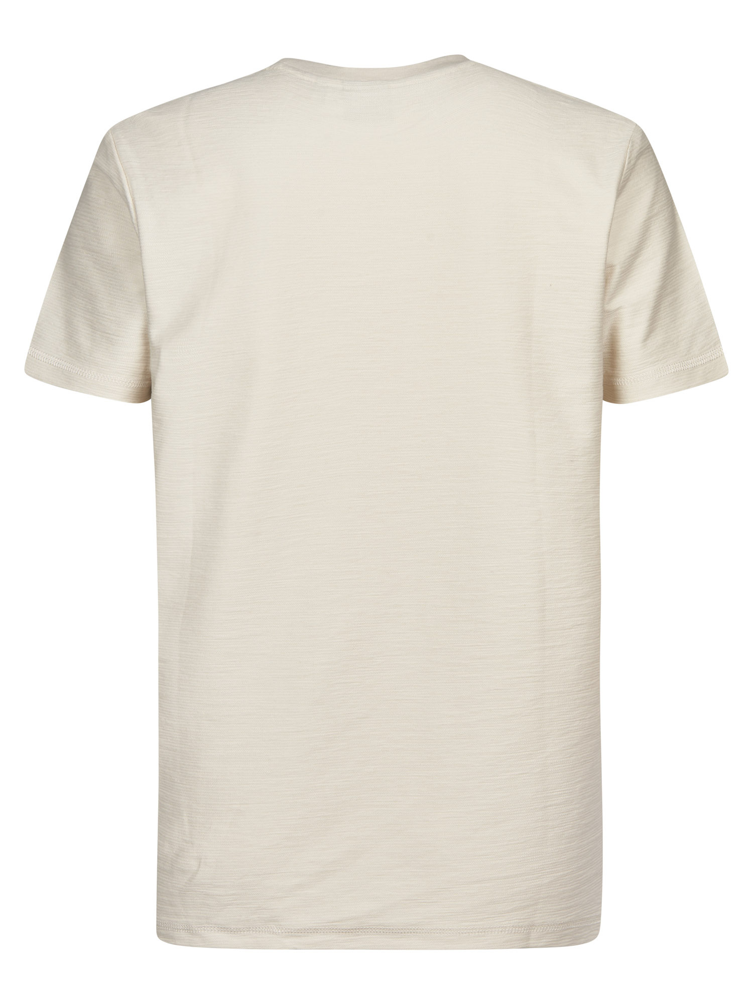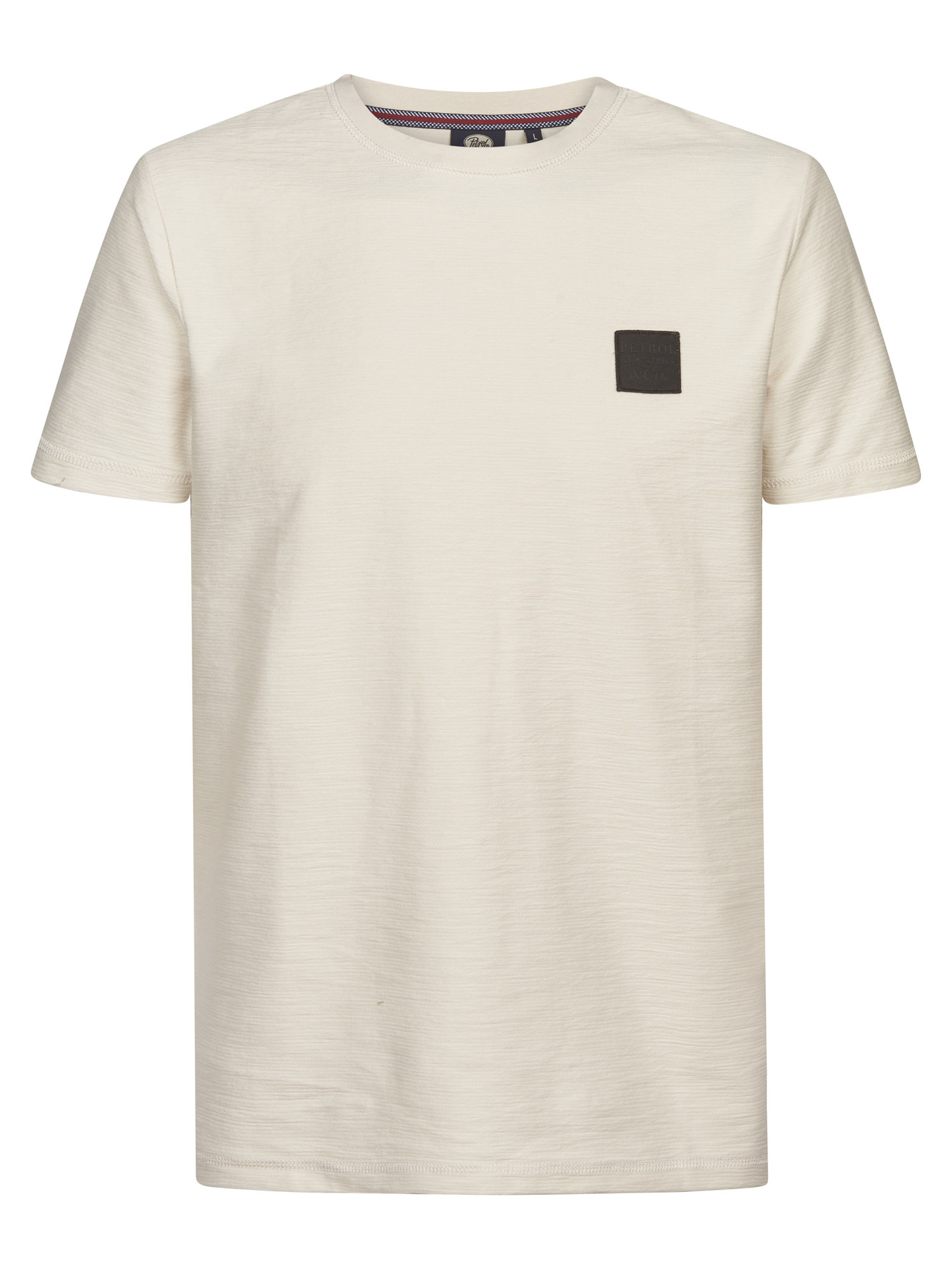 Dit shirt heeft een zachte stof met een lichte structuur, met een geribde ronde hals en korte mouwen.