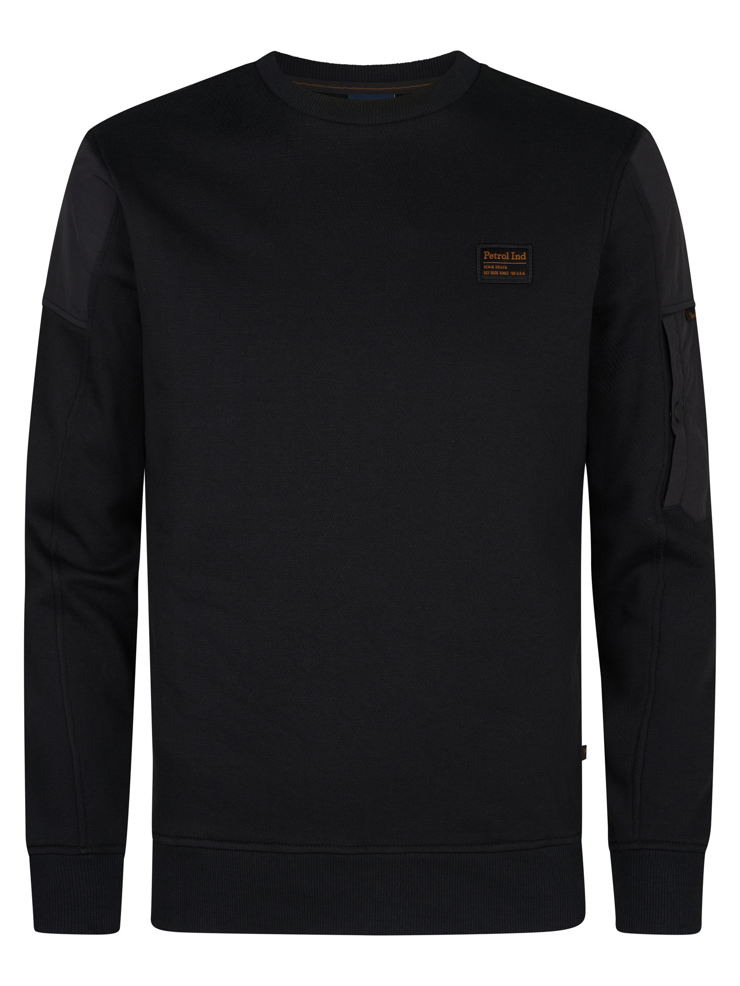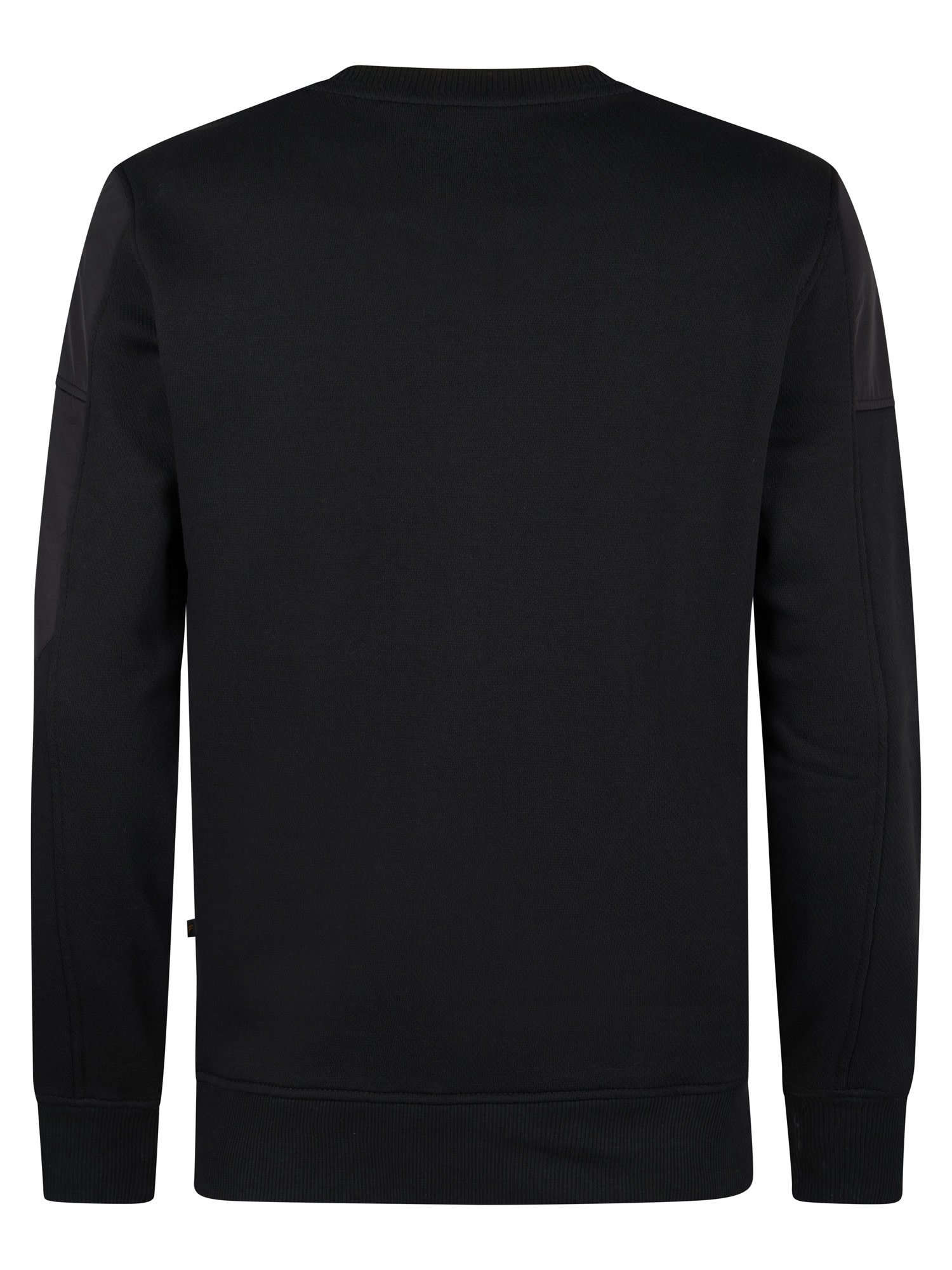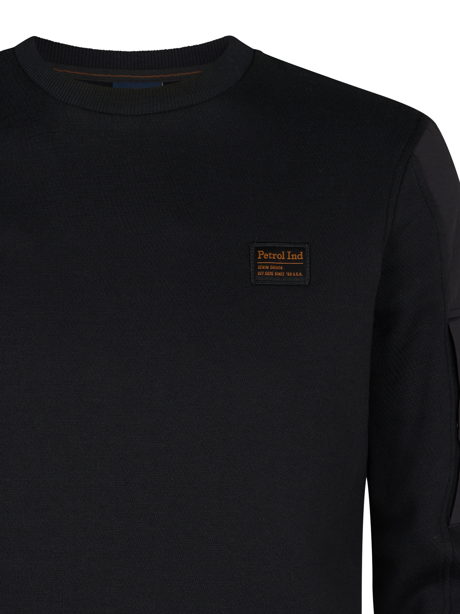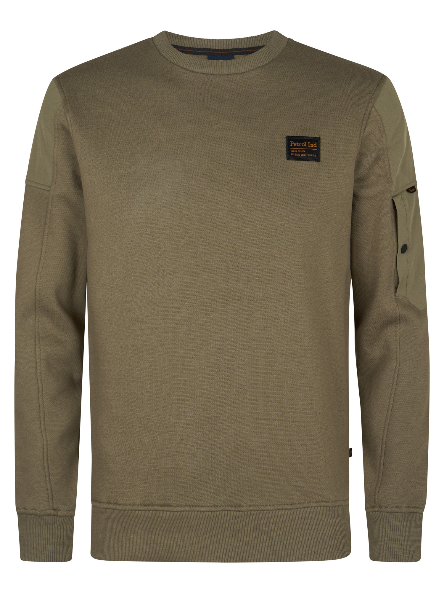 Deze sweater met een ronde hals heeft lange mouwen, op de linkermouw zit een zakje met een drukknoopsluiting. De sweater heeft een zachte binnenkant wat fijn is voor de koude dagen. De sweater is er in de kleur mosgroen en zwart.