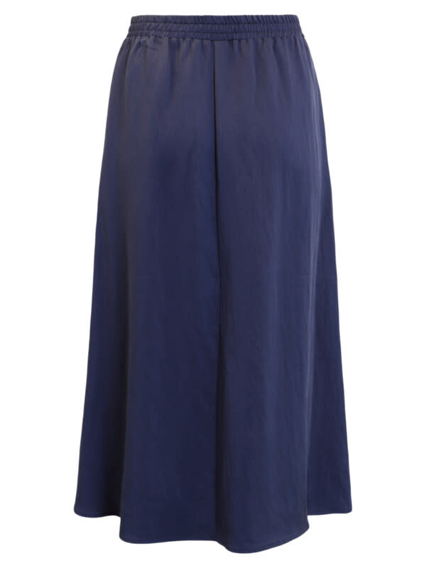 Deze rok met een elastische boord en steekzakjes loopt wat wijd uit en heeft siernaden op het voorpand. De rok is verkrijgbaar in de kleuren Nomad en Navy.